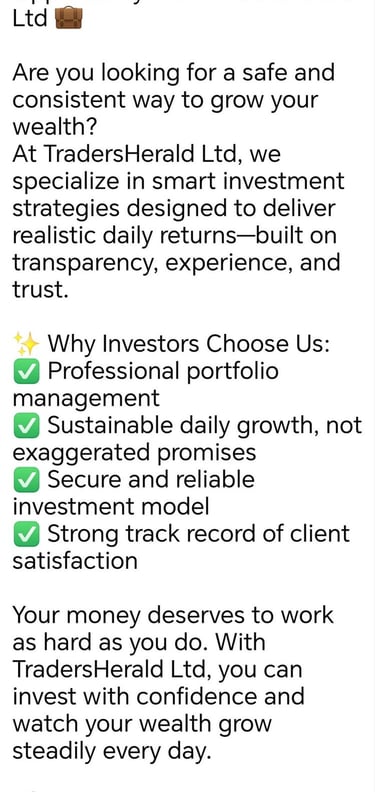 Founded in 1999, Traders Herald Limited drives sustainable growth through technology, energy, and diversified investments, offering expert strategies tailored to your financial goals.